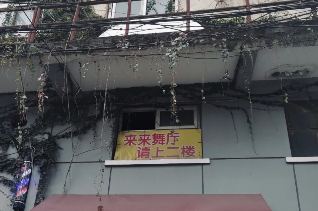 那天,我们把鞋子走得湿透,发现来来舞厅的废墟藏在了一扇紧锁的门后。我们去问了楼上卖蛐蛐的大妈,又走进旁边的扦脚店去问店里的小哥,周围人似乎不知道里面发生过什么,也不愿知道里面发生过什么。